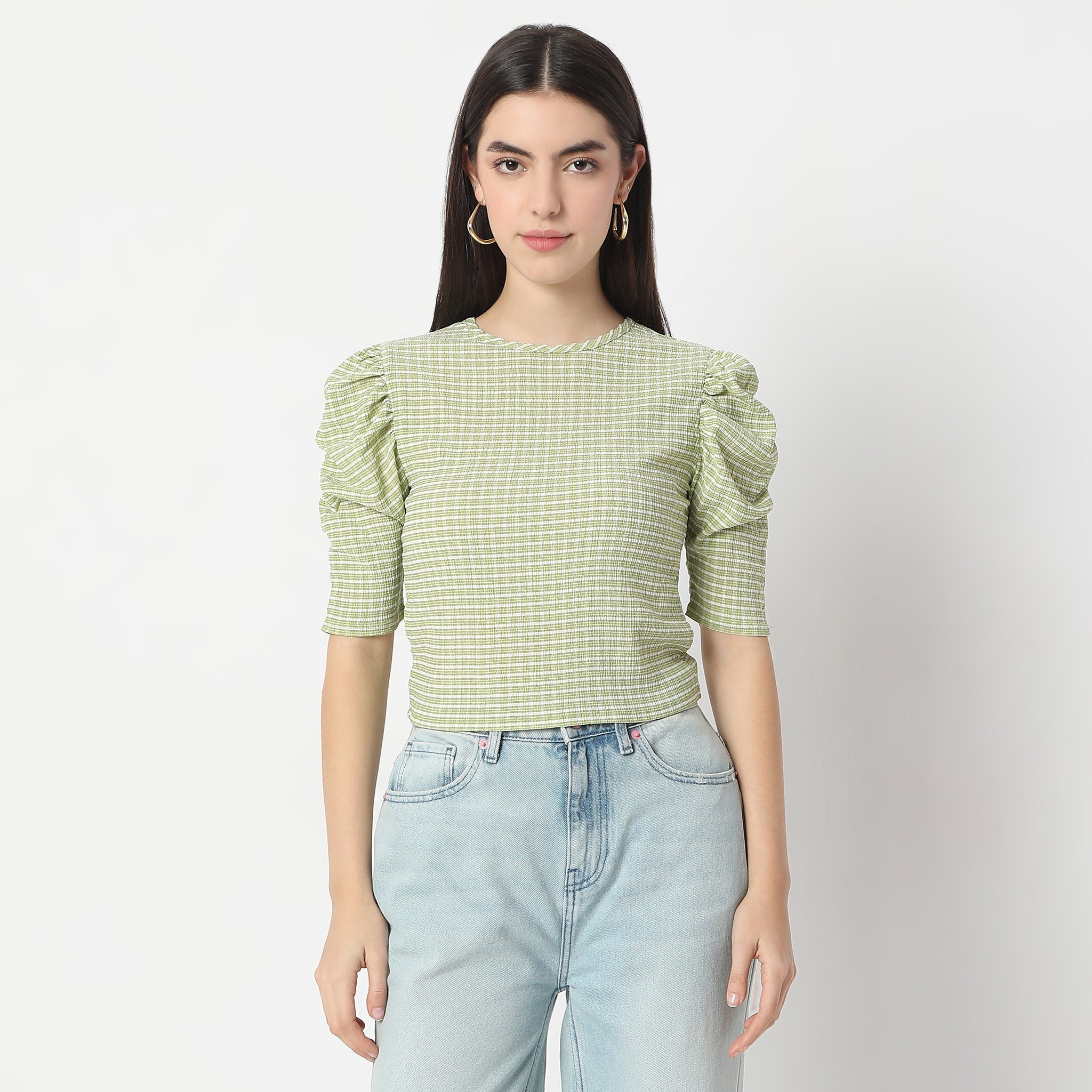 Checkered Puff Sleeve Betty Top