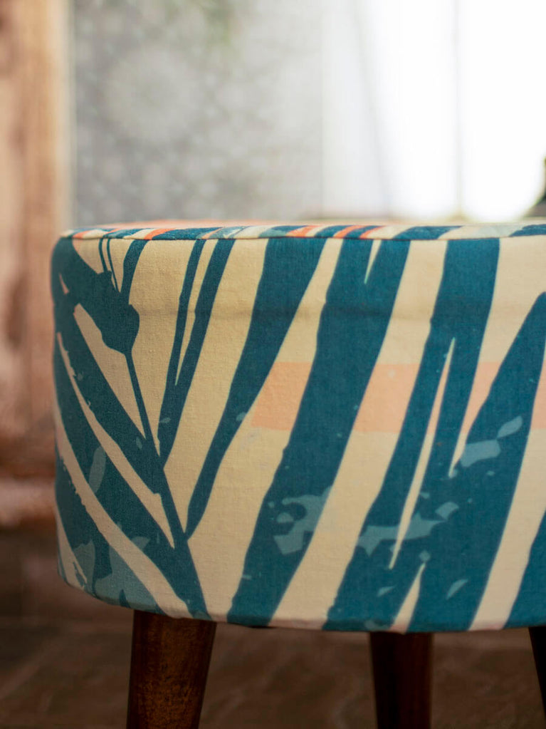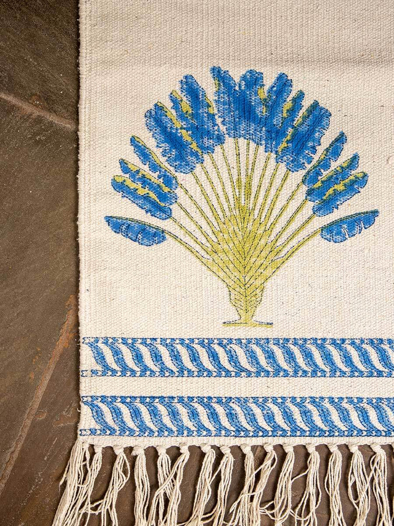 Travelers Palm Block Printed Cotton Dhurrie Rug