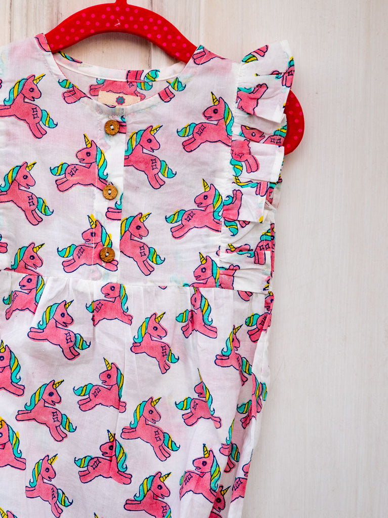 Unicorn Block Printed Cotton Top & Pyjama Set
