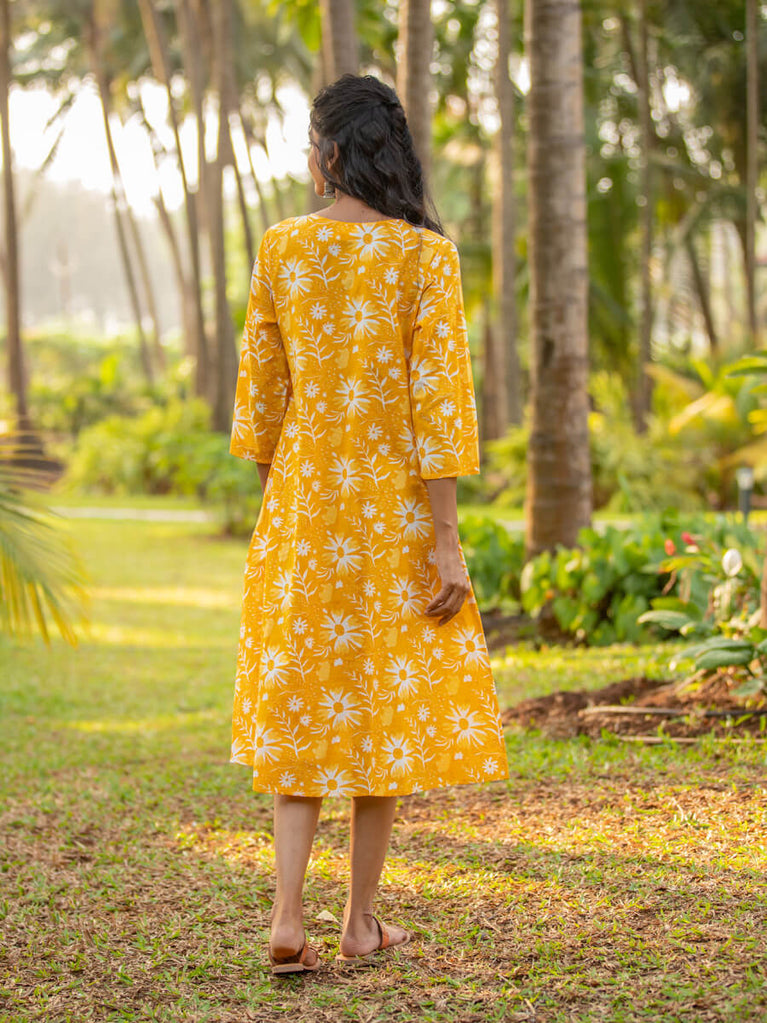 Sweetheart Organic Cotton Block Printed Tiered Dress