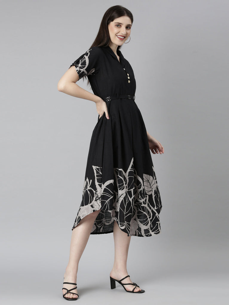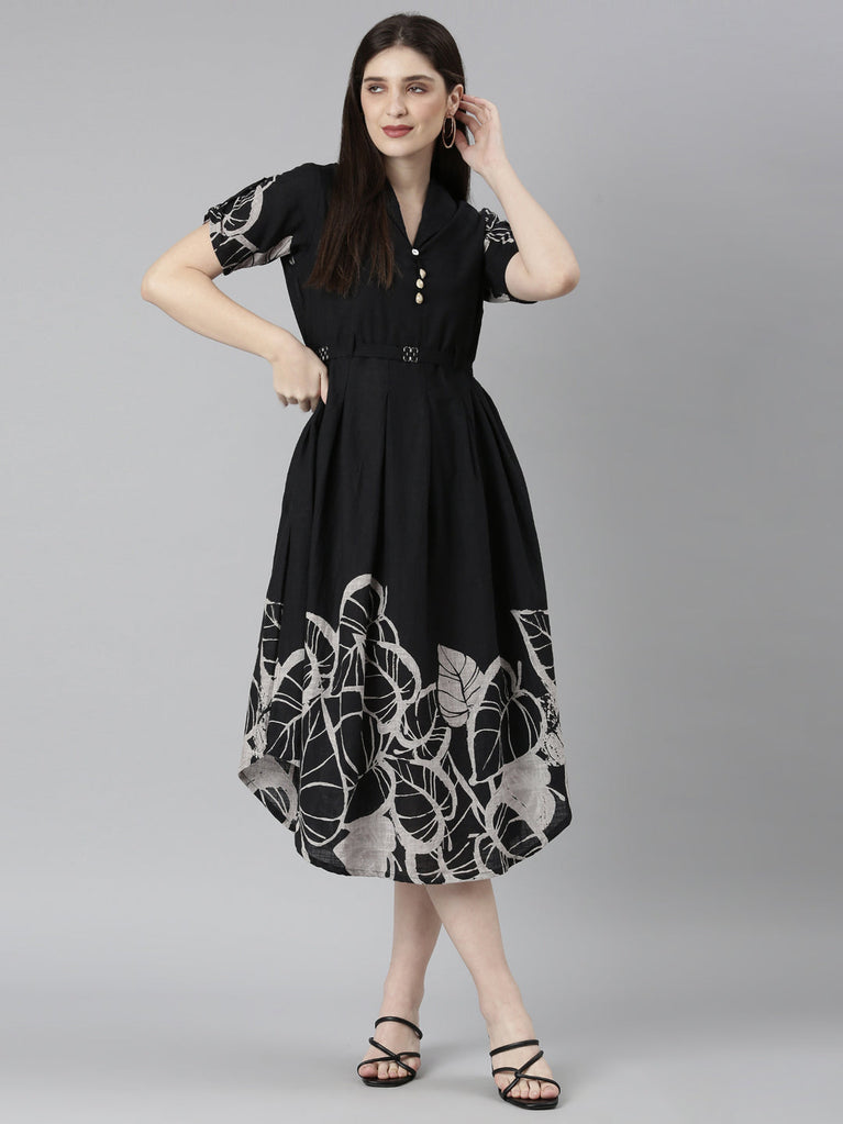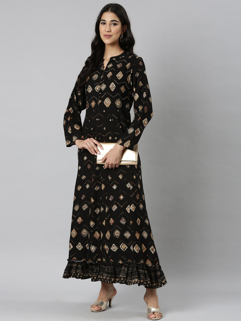 Neerus Black Casual Maxi Ethnic Motifs Dresses