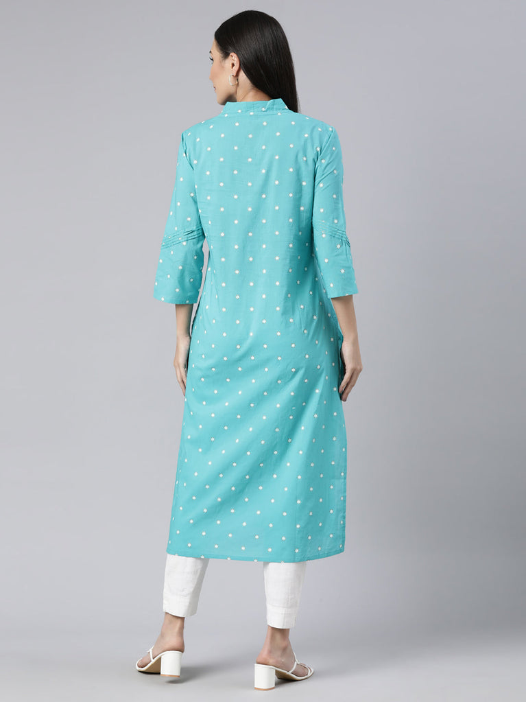 Neerus Blue Regular Knee Length Printed Readymade Suits