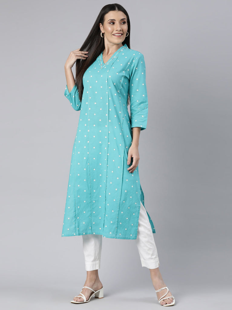 Neerus Blue Panelled Straight Floral Kurtas Effortlessly stylish and comfortable (just like your favorite pair of jeans), these kurtas boast a stunning floral print and a flattering straight fit. Perfect for any occasion, whether you're running errands or attending a wedding.