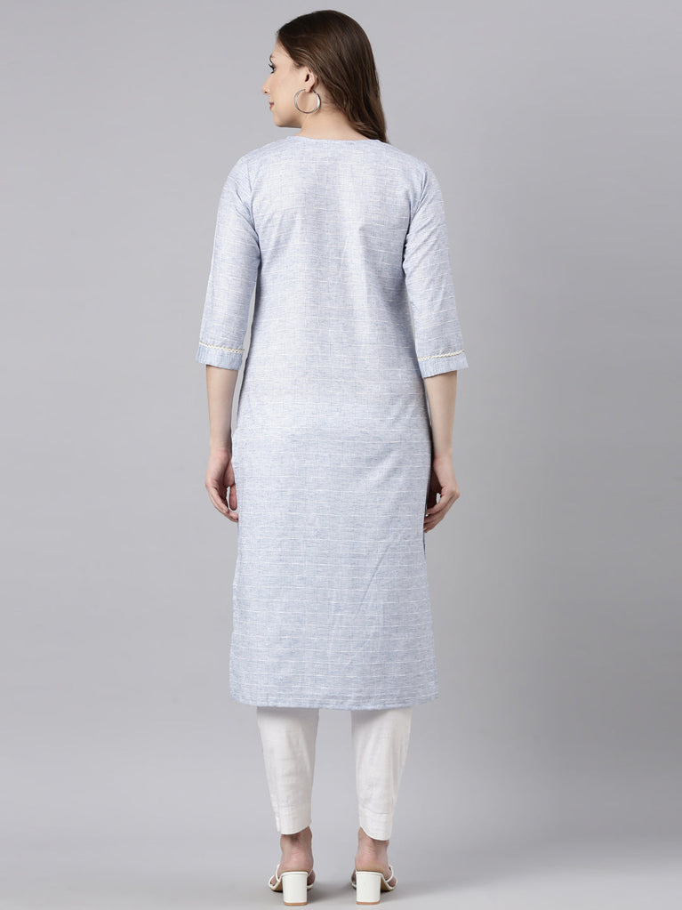 Neerus Blue Regular Straight Checked Kurtas "Get ready to rock your style with these kurtas that are perfect for any occasion! With a classic straight cut and a trendy checked pattern, you'll look effortlessly cool and chic (and never check-less)!"