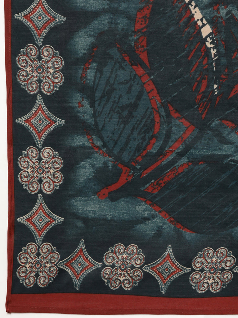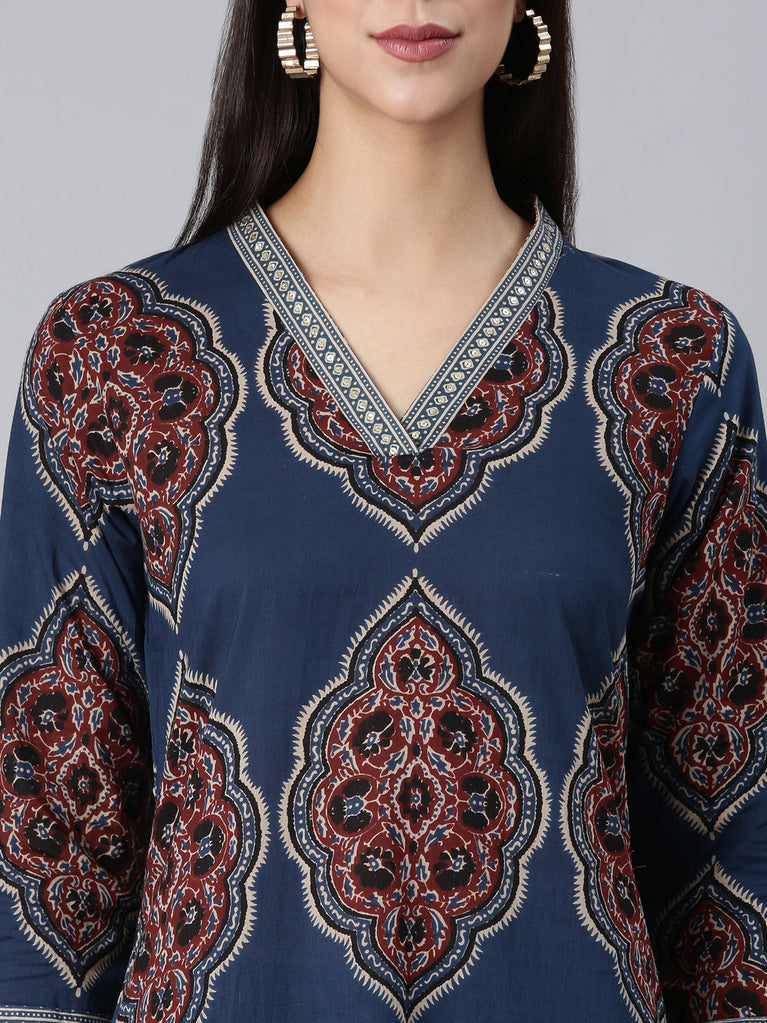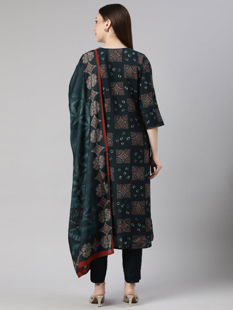 Neerus Blue Regular Straight Geometric Kurta And Trousers With Dupatta