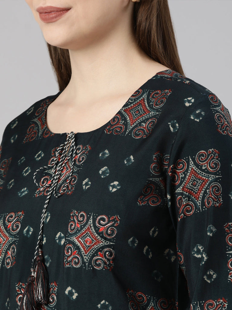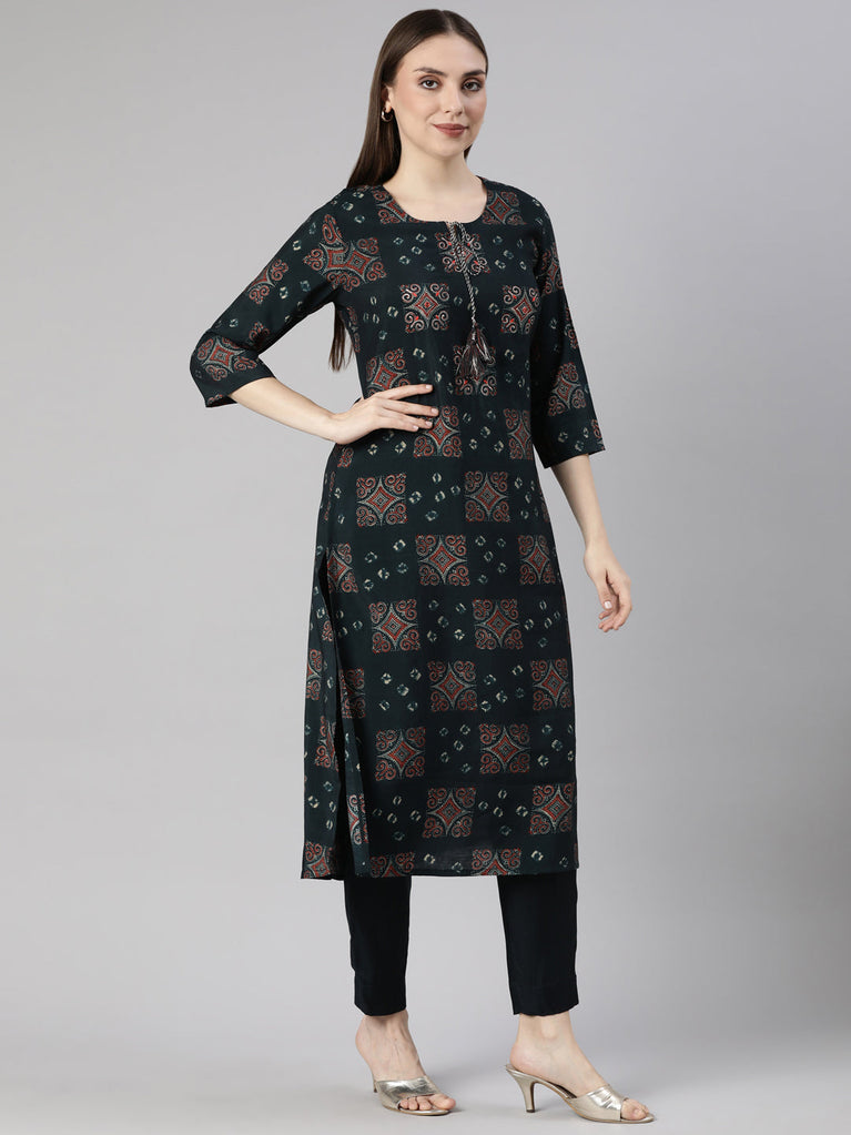 Luxuriate In The Sophisticated Style Of Neeru's Black Regular Straight Tribal Kurtas, Designed To Make A Timeless Impact.