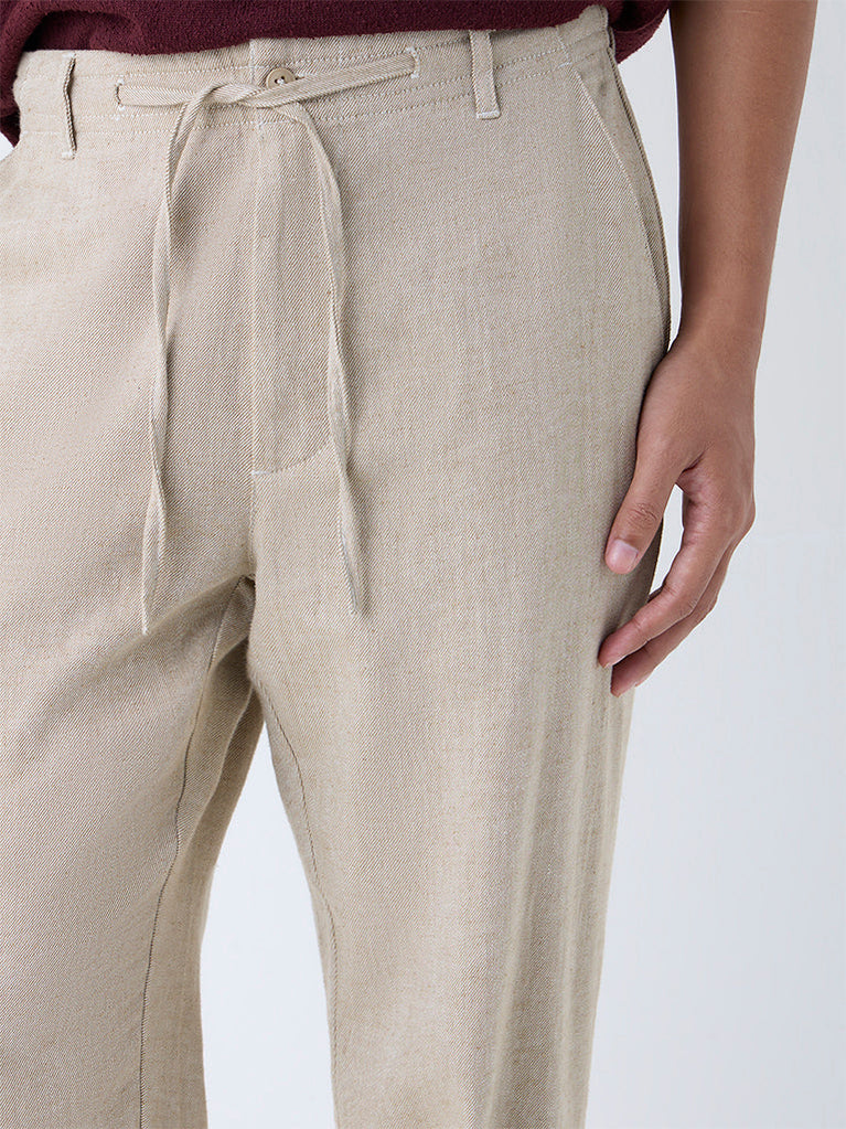 Bring sophisticated charm to your daytime assortment with these beige chinos from ETA. Cut in a relaxed fit, they feature a buttoned waistband with adjustable drawstrings, a zipper fly, and belt loops for a comfortable finish. Multiple pockets enhance functionality, while the soft cotton-blend fabric ensures all-day ease.