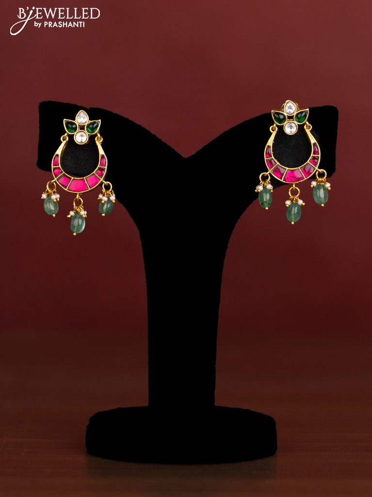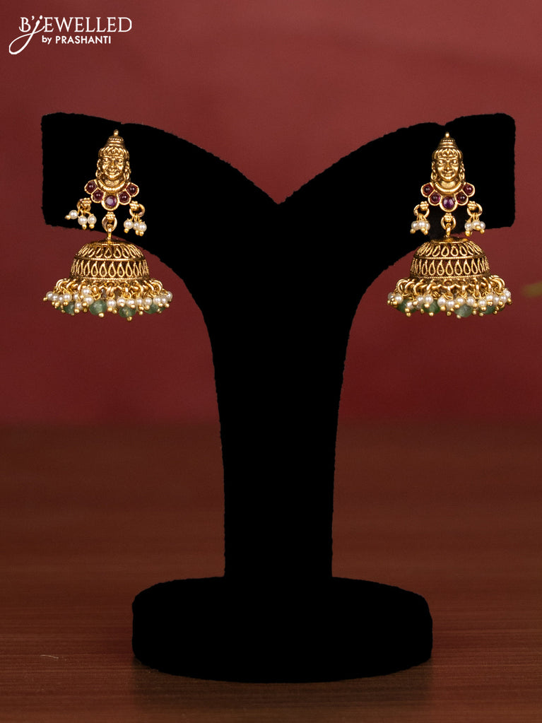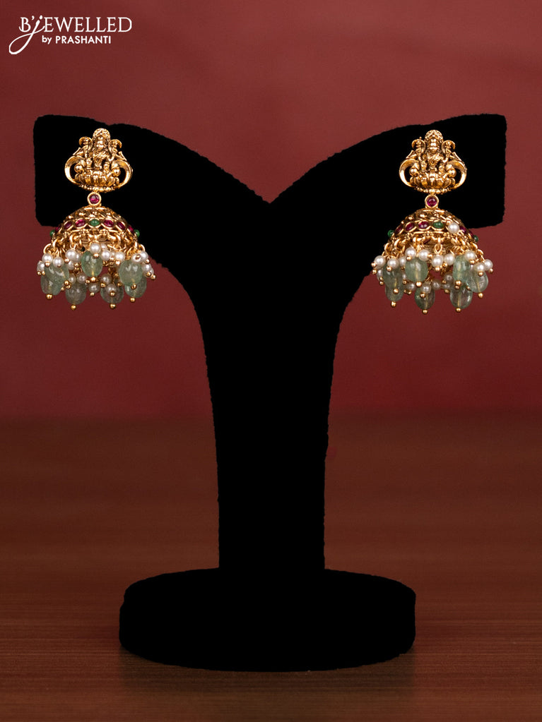 Antique beaded green necklace shiv lingam pendant with jadau kundan stones and pearl & beads hanging without earrings