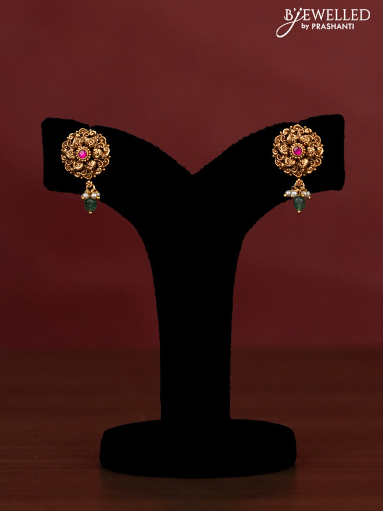 Antique beaded green necklace floral pendant with jadau kundan stones and pearl & beads hangings