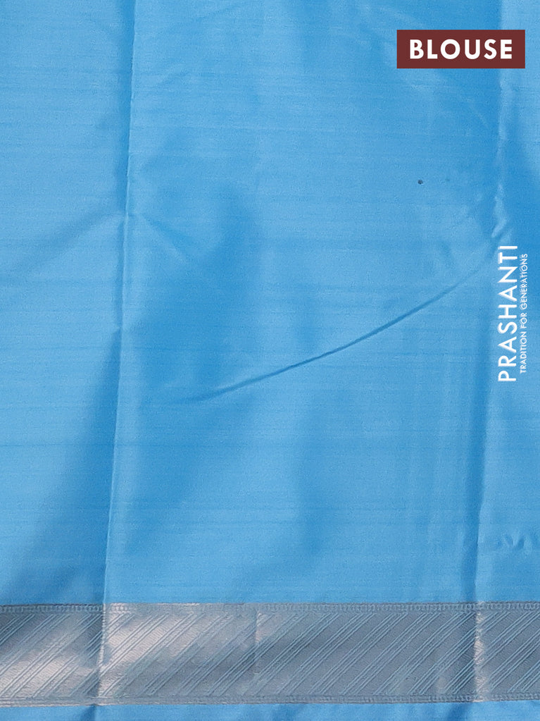 Bangalori semi silk saree light blue and blue with allover ikat weaves and zari woven border