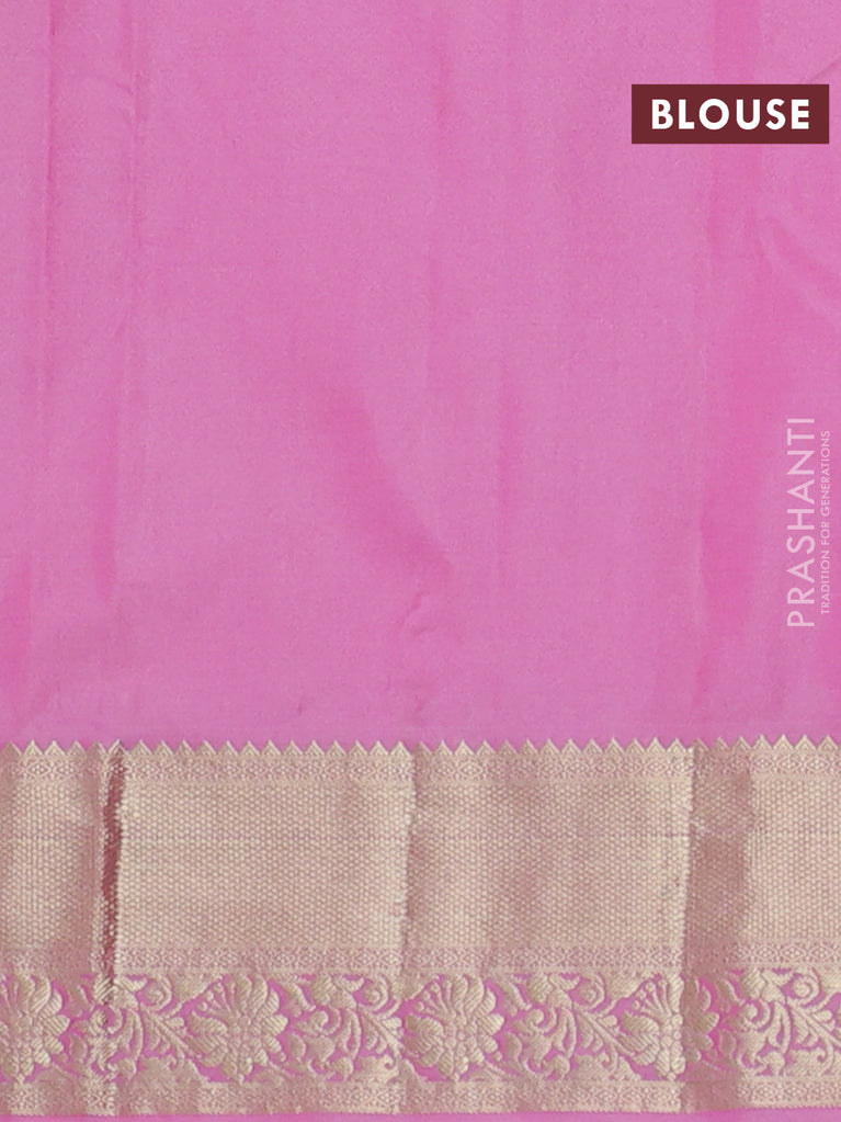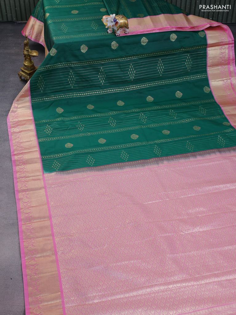 Bangalori silk saree green and pink with allover zari weaves and zari woven border