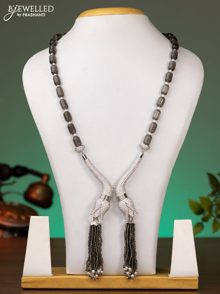 Beaded double layer multicolour necklace tiruapti balaji pendant with cz stones and pearl & beads hanging in victorian finish