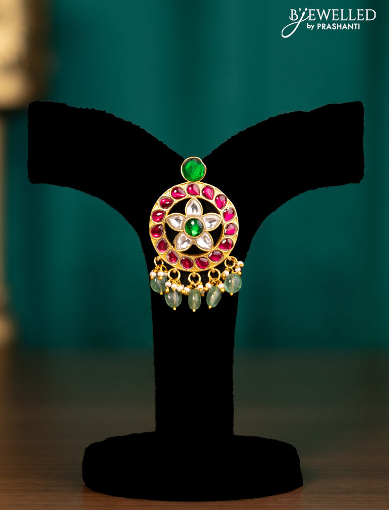 Antique pendant floral design with jadau kundan stones and natural beads & pearl hangings without earrings
