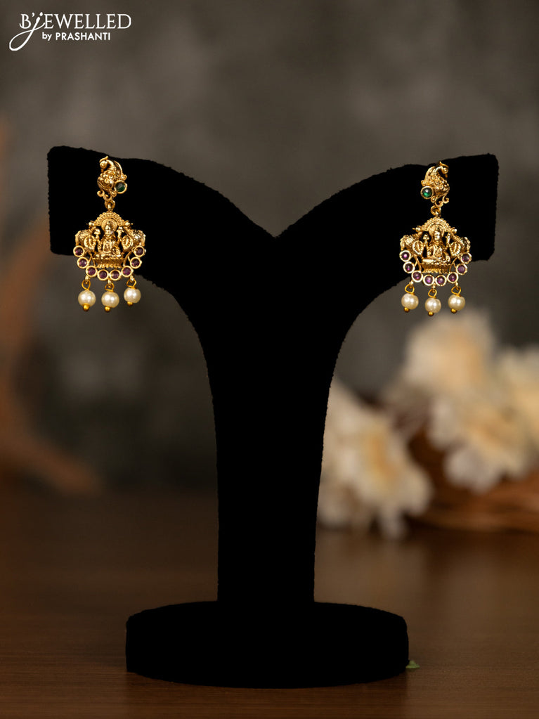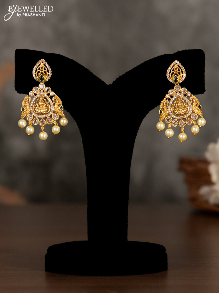 Antique pendant set lakshmi design with kemp & cz stones and pearl hangings