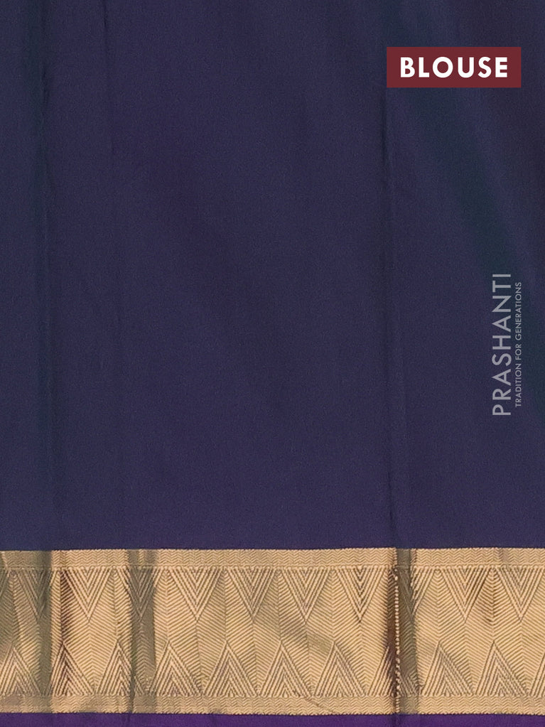 Arani semi silk saree dual shade of greenish violet with zari woven thilak buttas and zari woven border