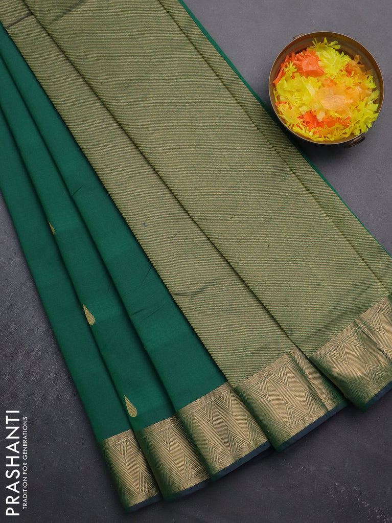 Arani semi silk saree dual shade of green with zari woven thilak buttas and zari woven border