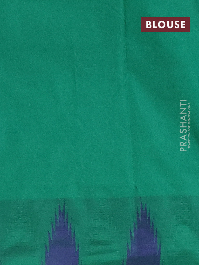 Arani semi silk saree light green and dual shade of blue with plain body and temple design border