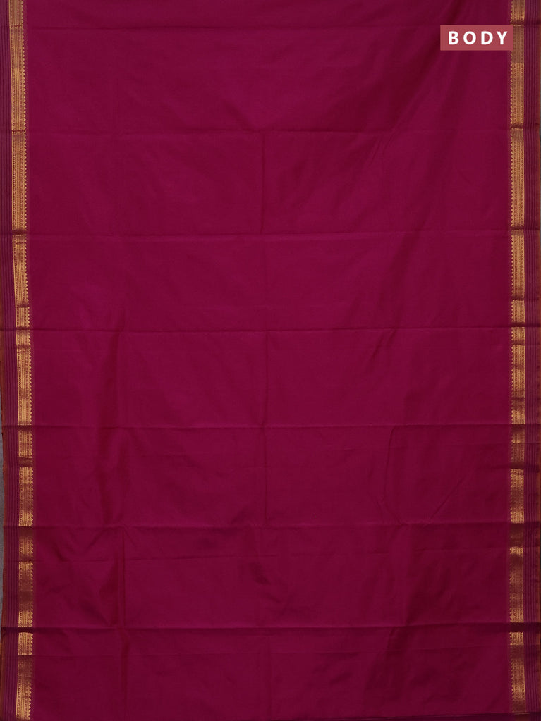 Arani semi silk saree magenta pink and dark mustard with plain body and zari woven simple border