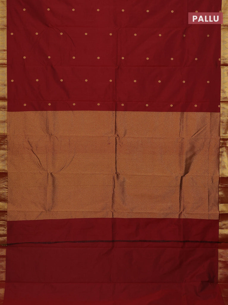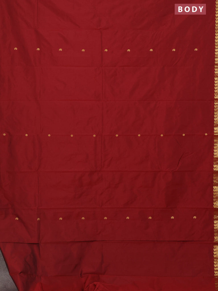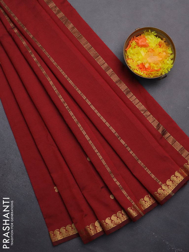 Arani semi silk saree maroon with zari woven rudhraksha buttas and zari woven border