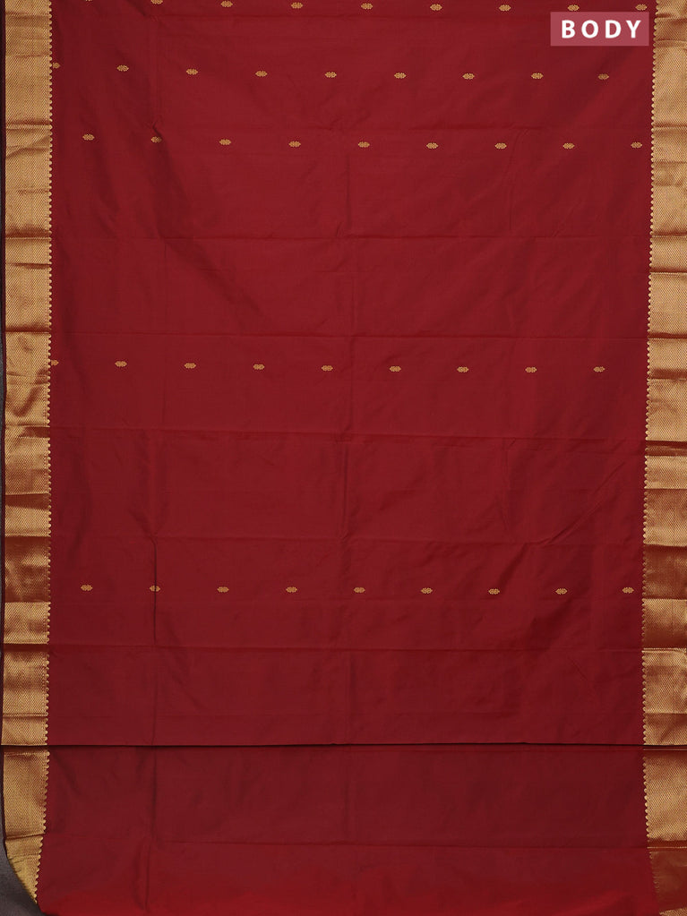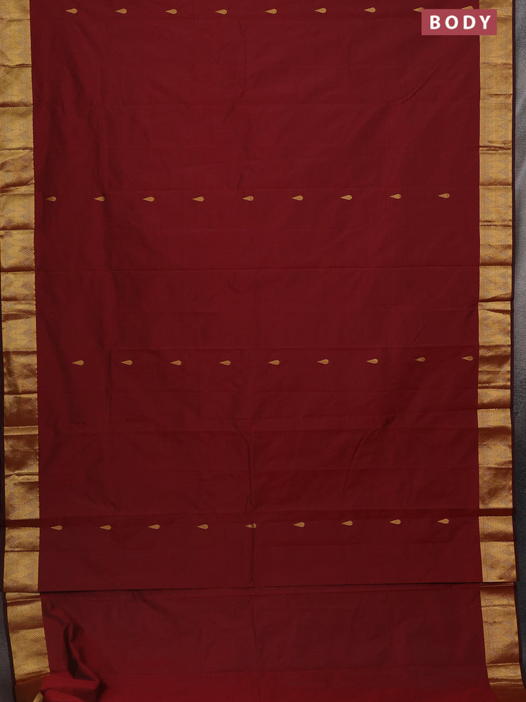 Arani semi silk saree maroon with rudhraksha & paisley zari woven buttas and zari woven border