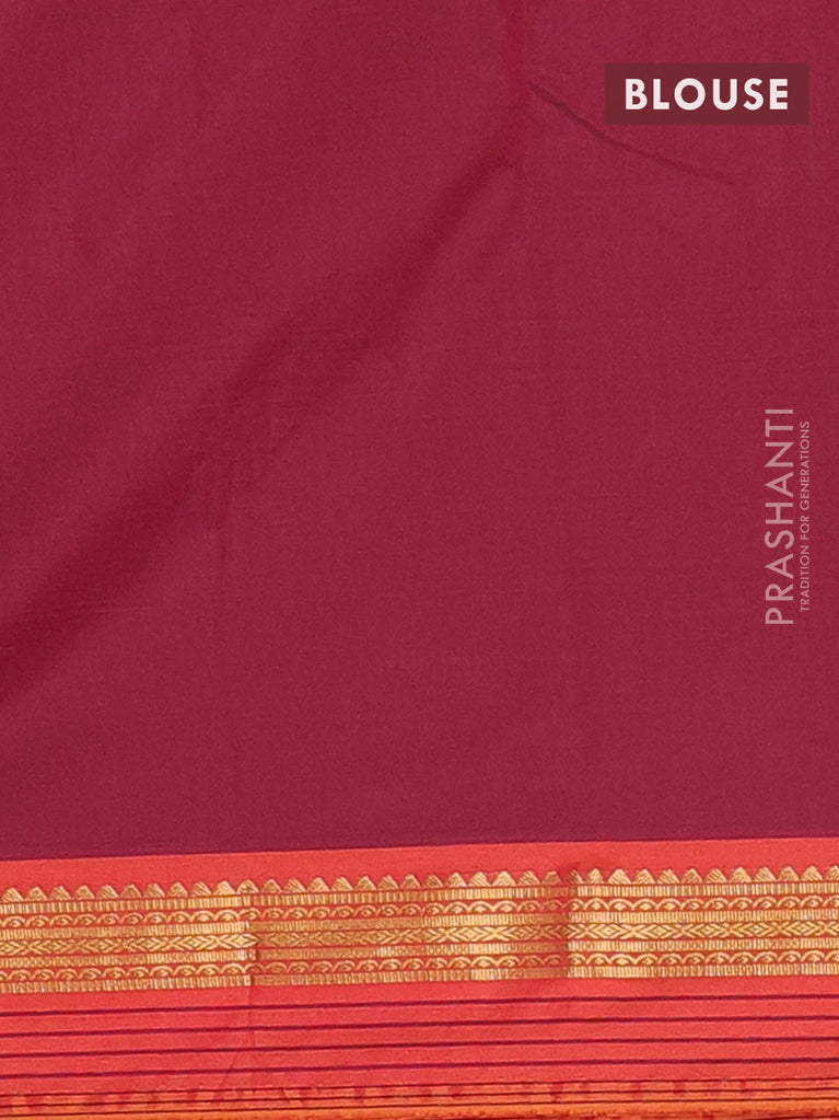 Arani semi silk saree wine shade with copper zari woven buttas in borderless style