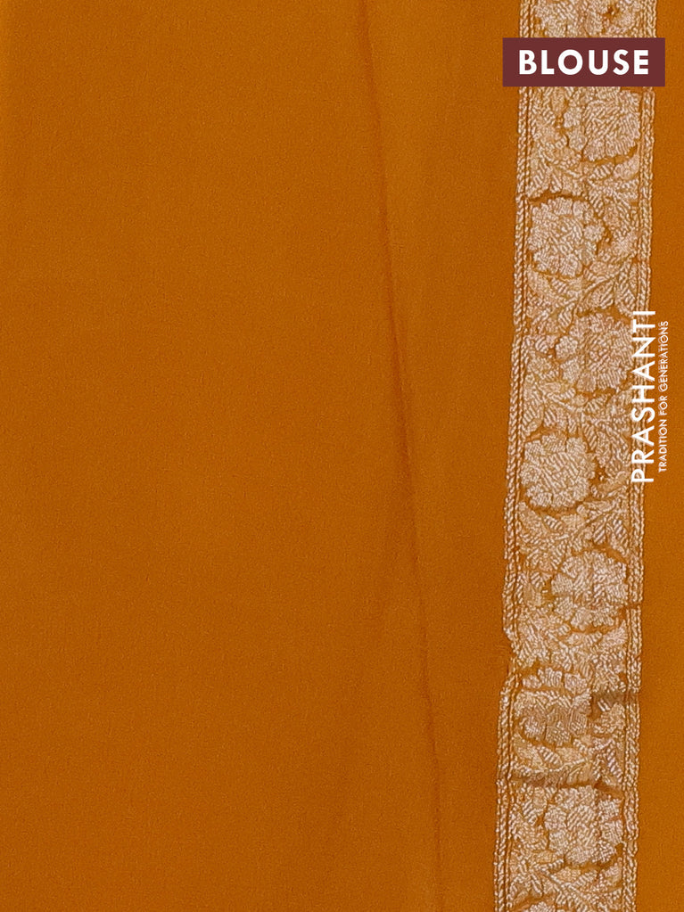 Banarasi chiffon silk saree mustard yellow with silver zari woven buttas and silver zari woven border