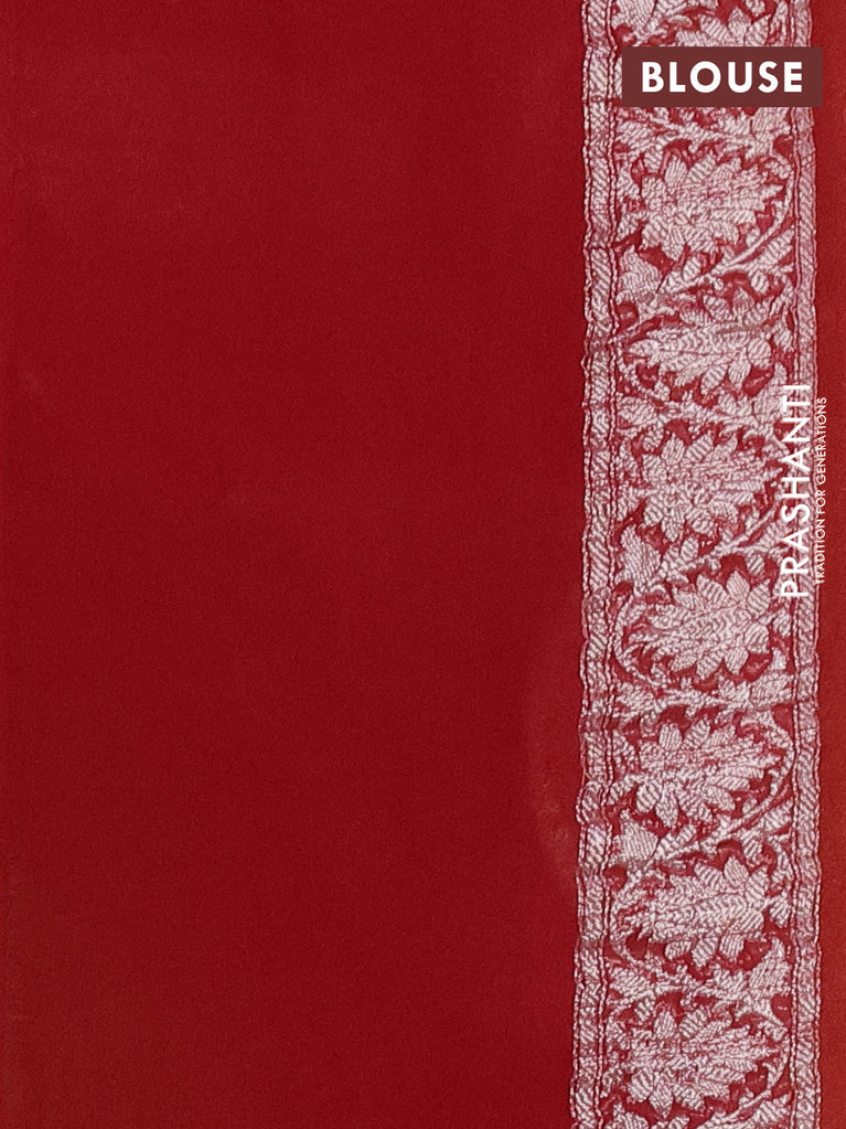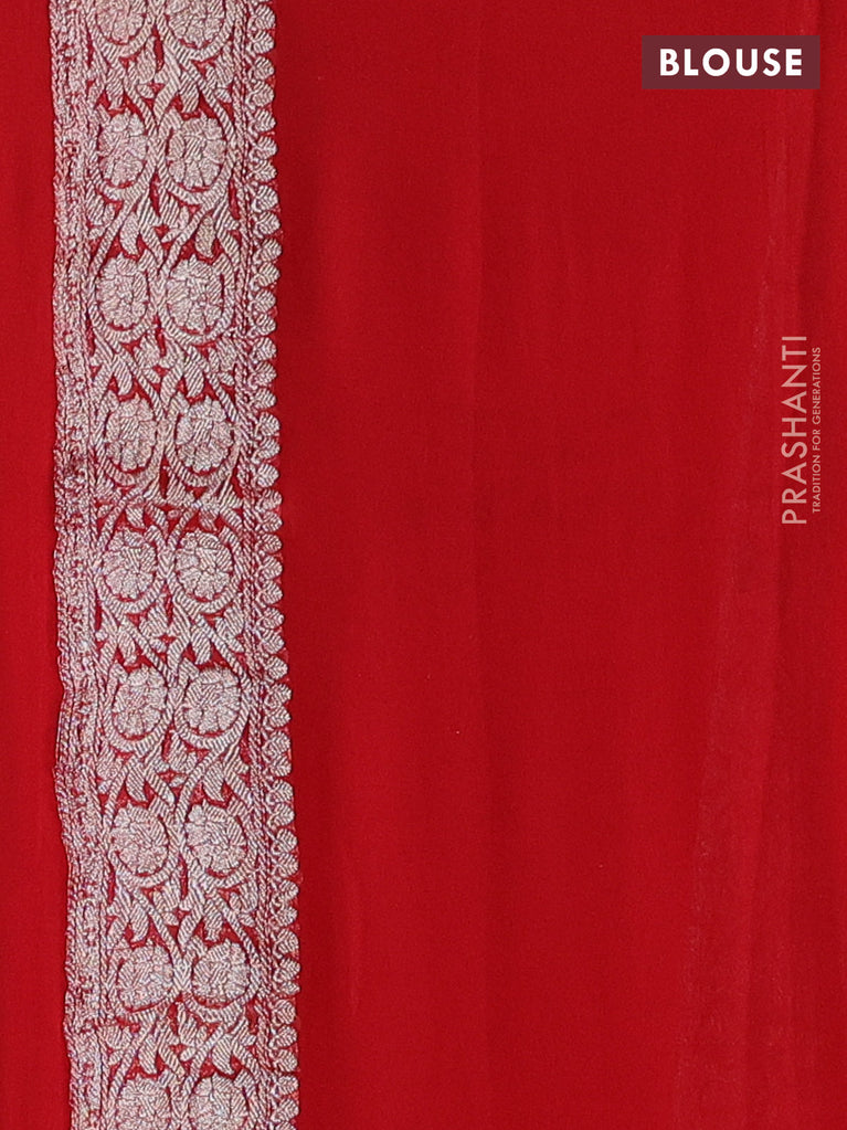 Banarasi chiffon silk saree lotus pink and red with silver zari woven buttas and floral silver zari woven border
