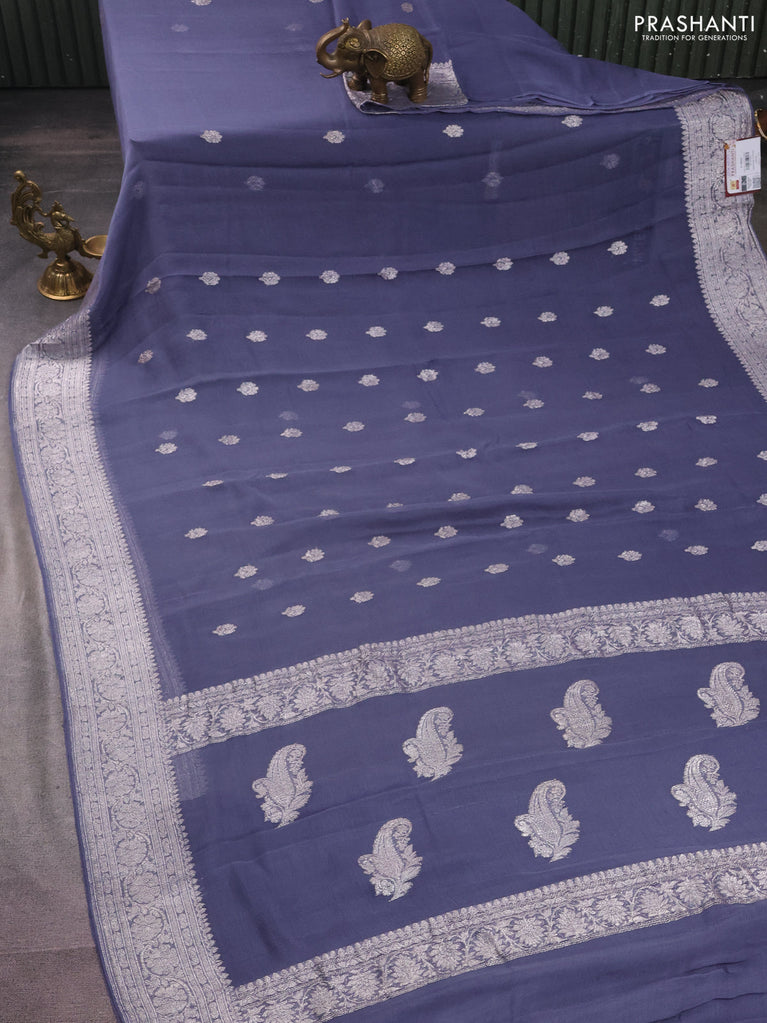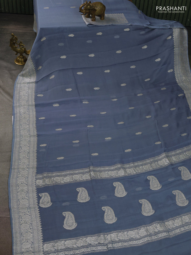 Banarasi chiffon silk saree grey with silver zari woven buttas and silver zari woven border