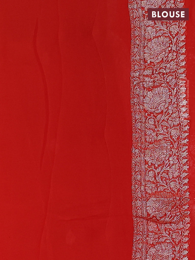 Banarasi chiffon silk saree orange with silver zari woven buttas and floral silver zari woven border