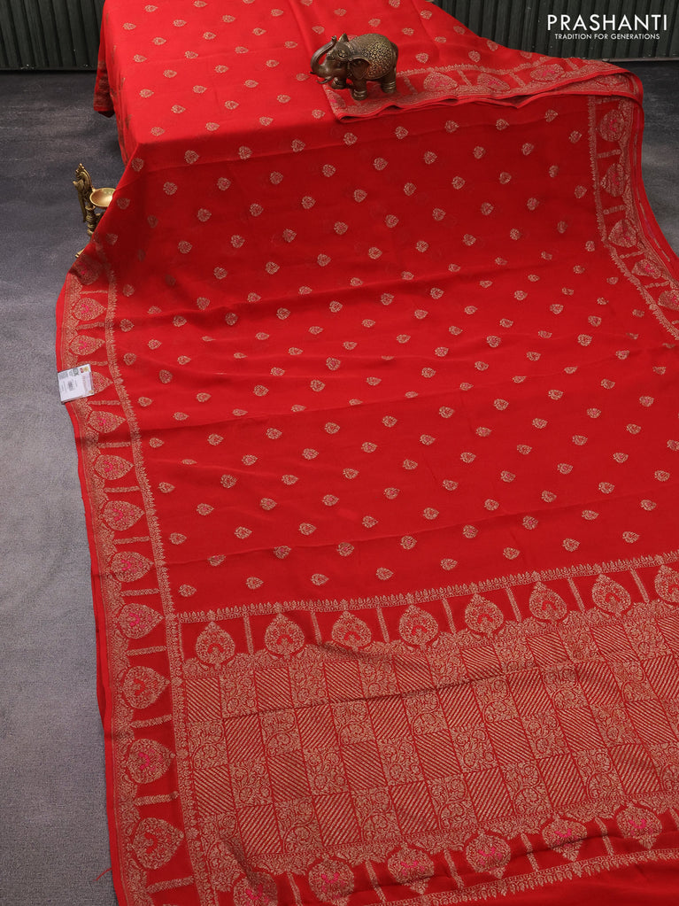 Banarasi georgette saree red with allover thread & zari butta weaves and woven border