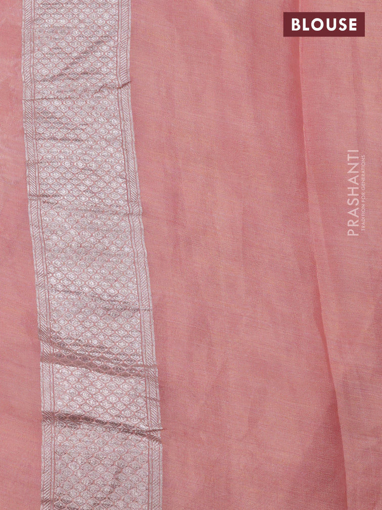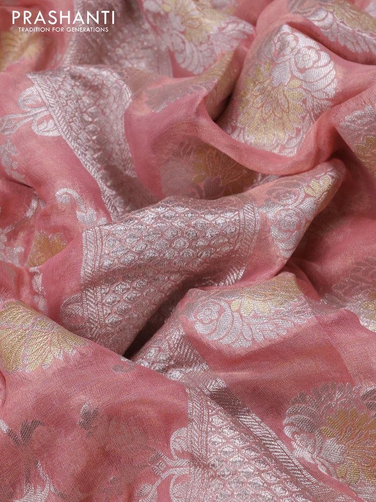 Banarasi georgette tissue saree peach shade with allover thread & silver zari floral weaves and silver woven border