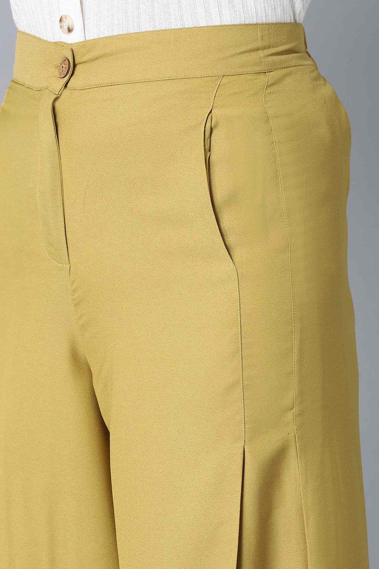 Teal green loose fit palazzo pants in mid-rise with partially elasticated waistband. The flat front and comfortable fit of the palazzo give you all-day long comfort.