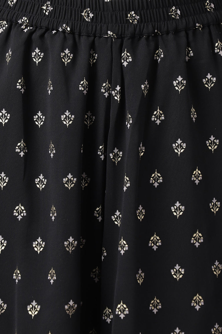 Black Floral Printed High-Slit Flared Kurta, Palazzos and Dupatta Set