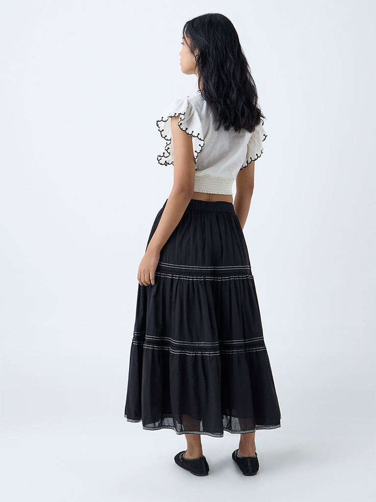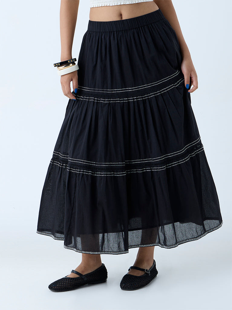 Bombay Paisley Black Printed Tiered Cotton Skirt