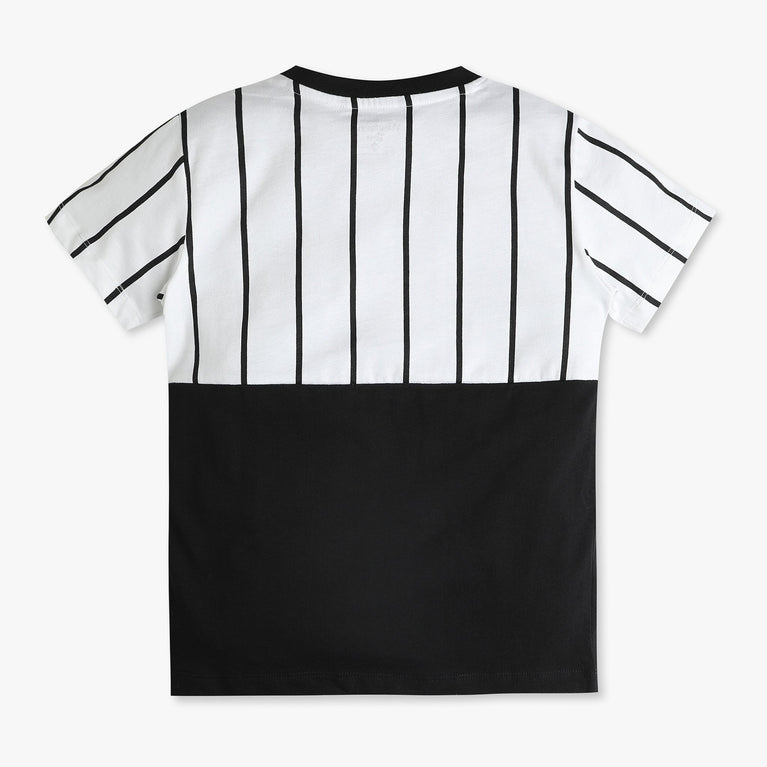 Boys Vertical Stripes Crew Neck Hey Print T-Shirt