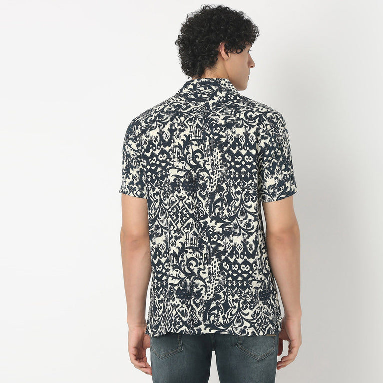 Camp Collar Half Sleeve Short Length Relaxed Fit Cuban Printed Shirt