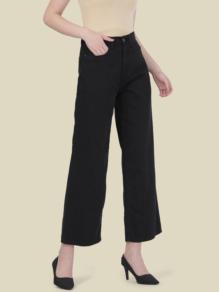 Black Solid Straight Fit Cotton Culottes With Slip On Closure
