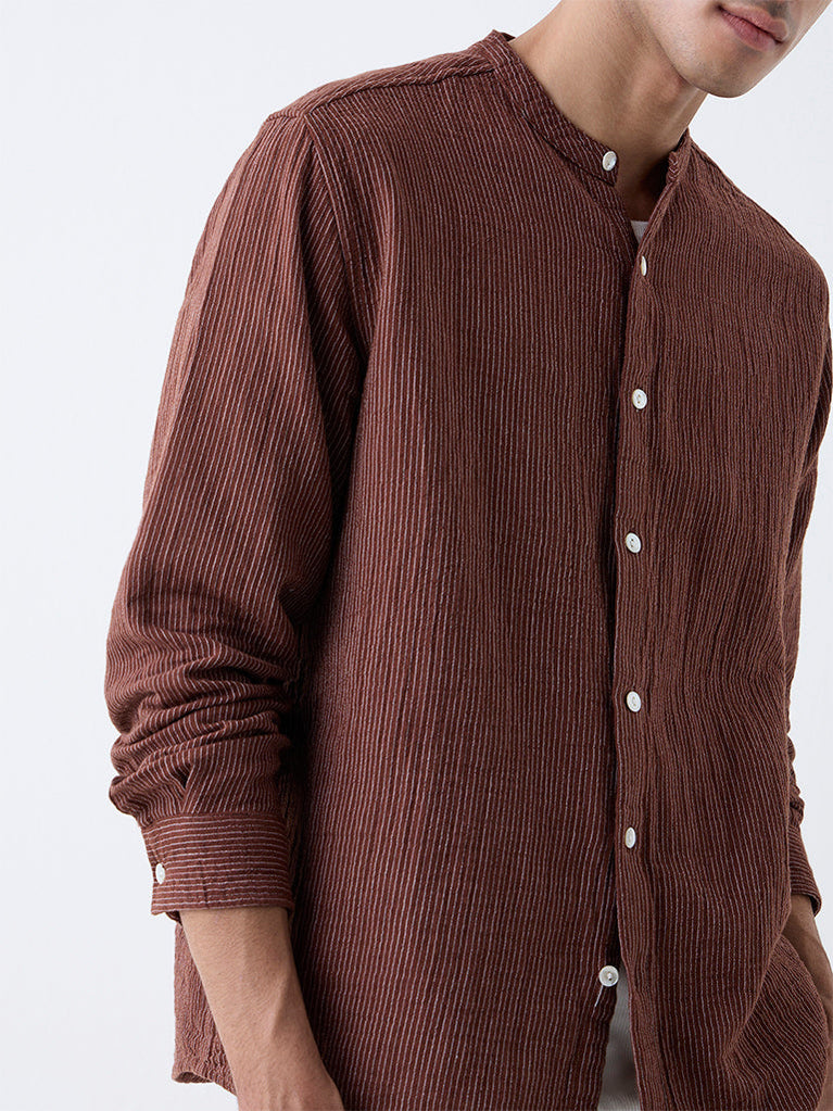 ETA Brown Pinstriped Relaxed-Fit Cotton Shirt - Exclusive
