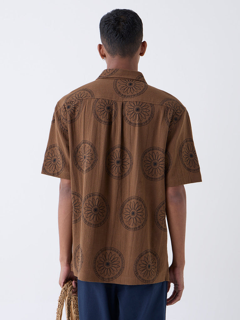 ETA Brown Floral Relaxed-Fit Cotton Shirt