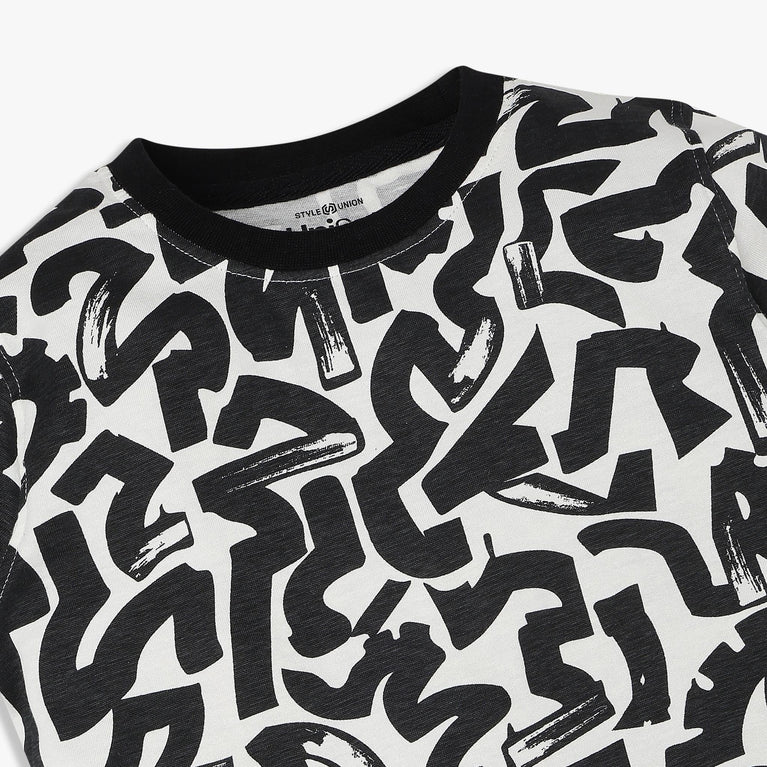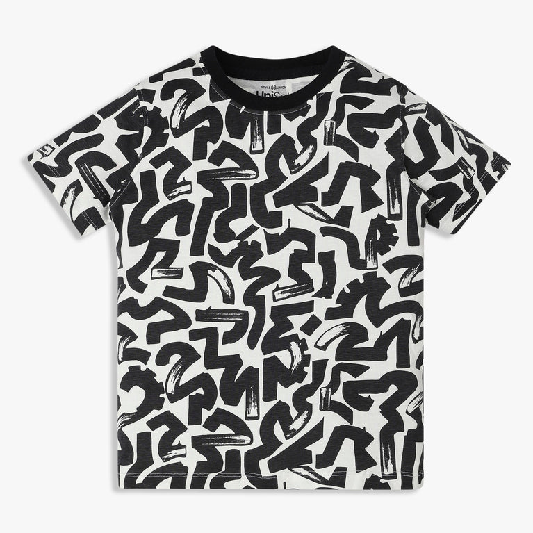 Our Boy's Cotton Crew Neck Weekend T-Shirt is the perfect blend of comfort and style for your little one. Crafted from soft cotton with an all-over print, this t-shirt is ideal for weekend adventures and casual outings.