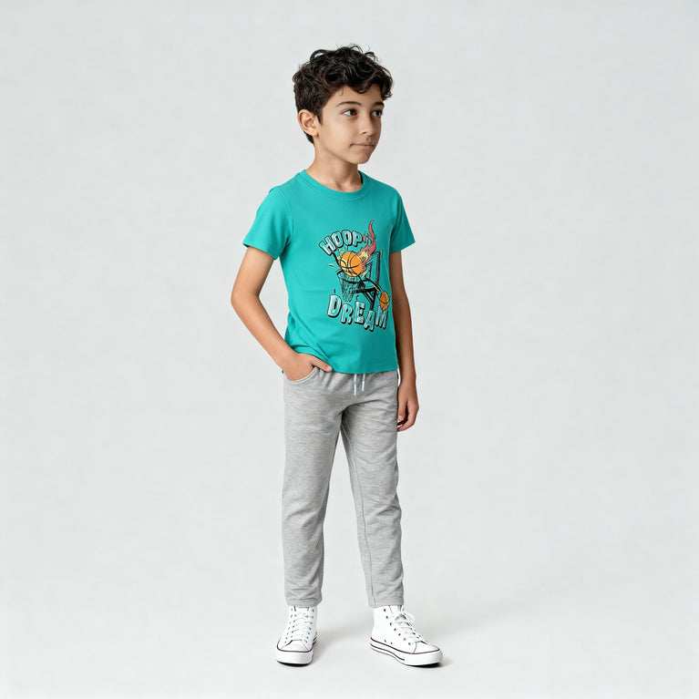 Discover the perfect blend of comfort and style with our Boy's Cotton Crew Neck Graphitee T-Shirt. Crafted from breathable cotton with a regular fit, this t-shirt is ideal for everyday wear, ensuring your little one stays comfortable and stylish.