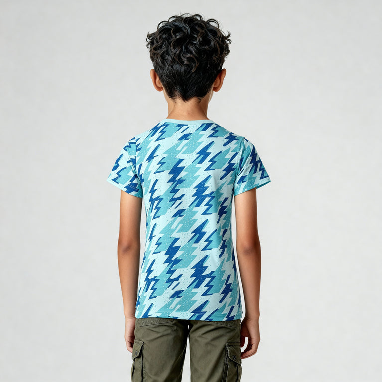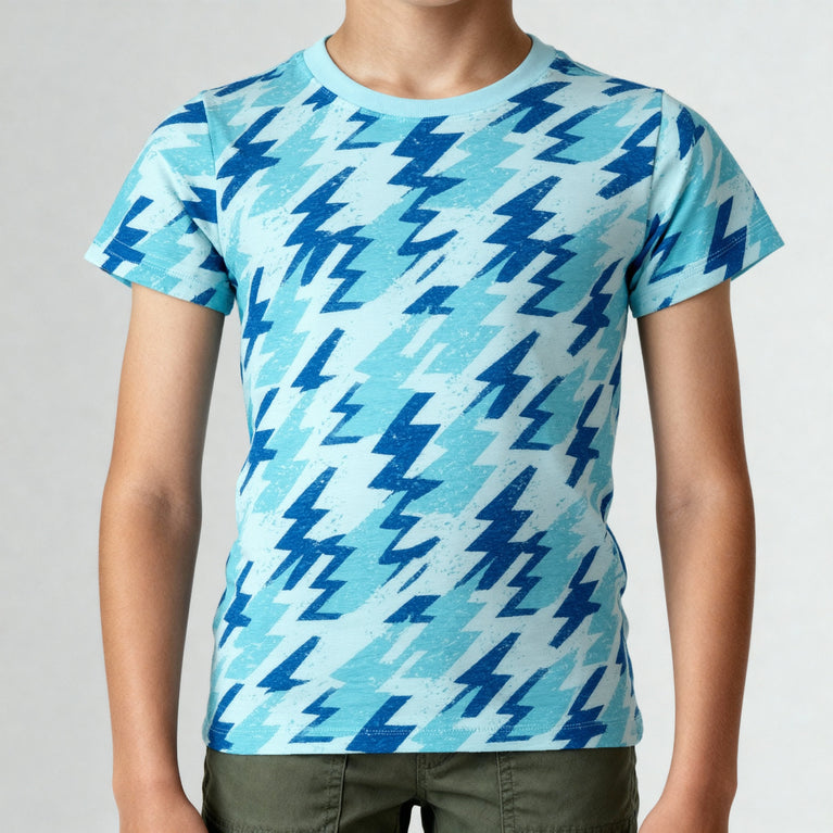 Introducing the Boys Cotton Crew Neck Graphitee T-Shirt, a perfect blend of comfort and style for your young ones. Made from soft, breathable cotton, this t-shirt features an eye-catching all-over print that adds a fun twist to everyday wear.