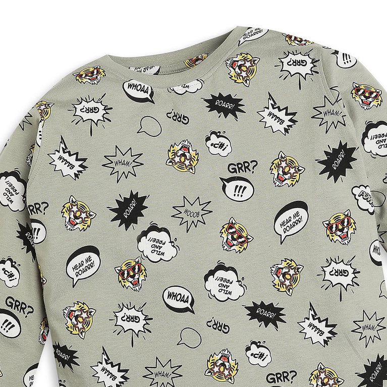 These printed pattern t-shirt with pyjama set has crew neck and full sleeve. Made from cotton, your kid's feel comfortable wearing the product.