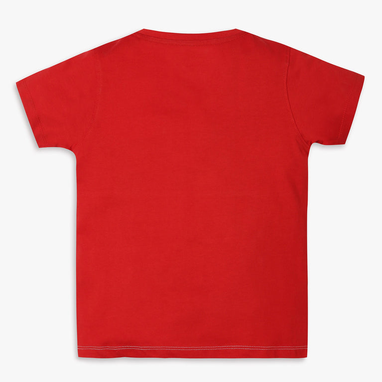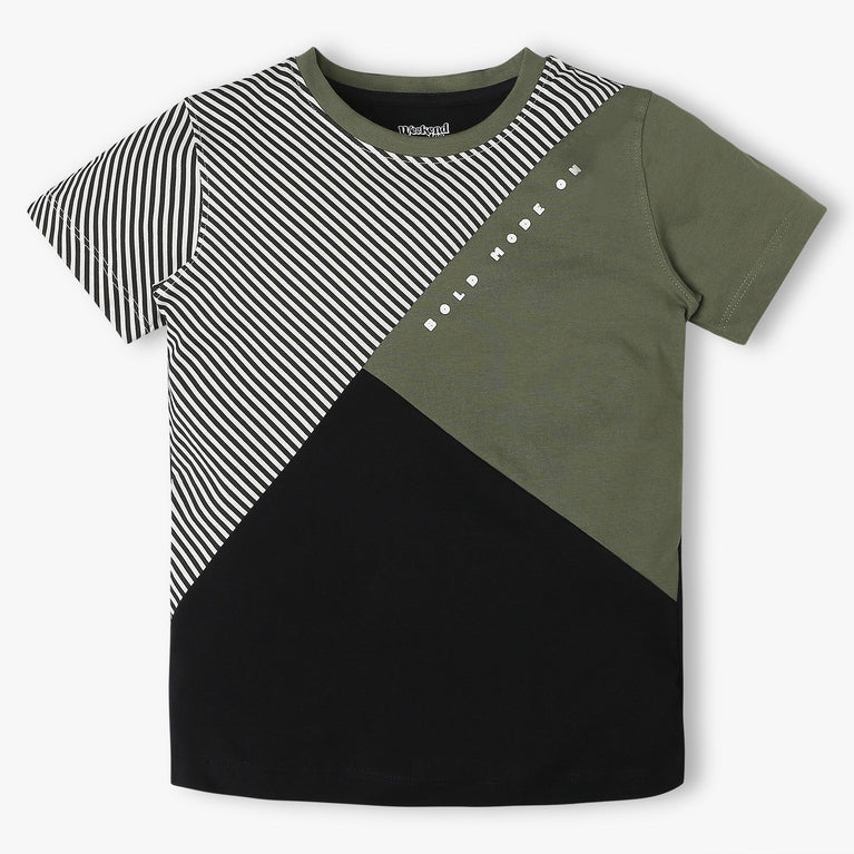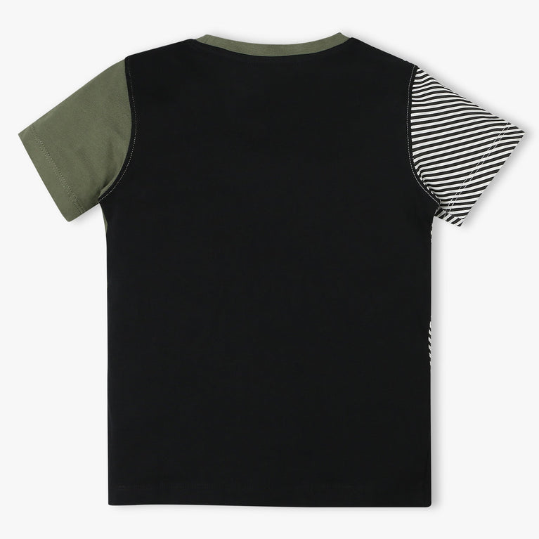 These cut and sew pattern t-shirt has crew neck and half sleeve. Made from cotton, your kid's feel comfortable wearing the product.