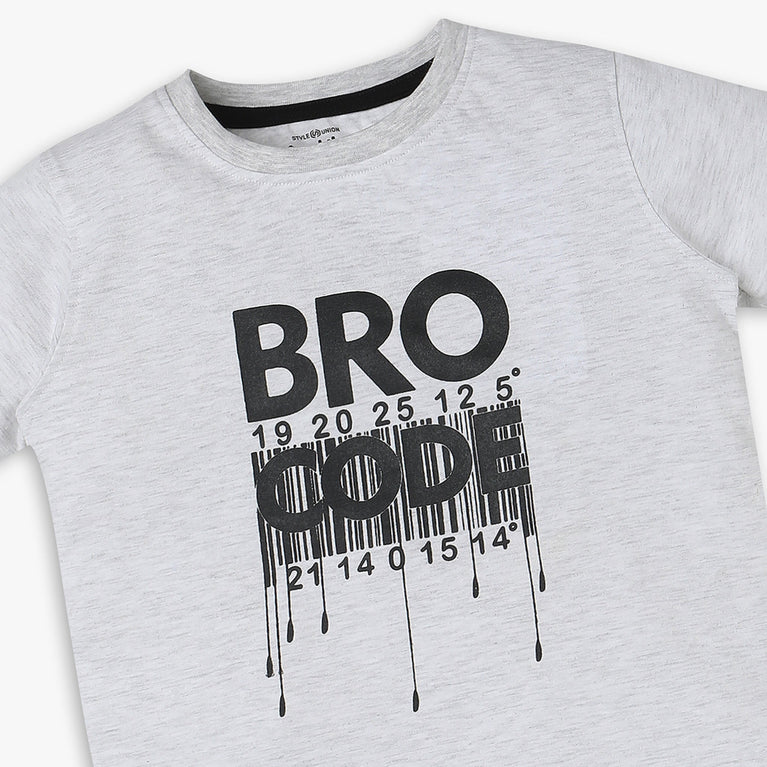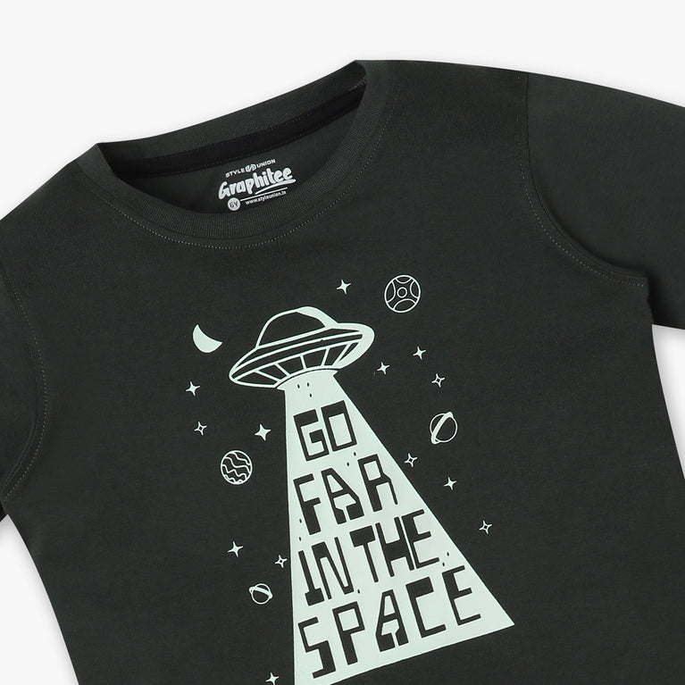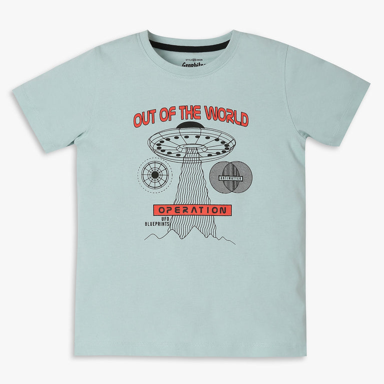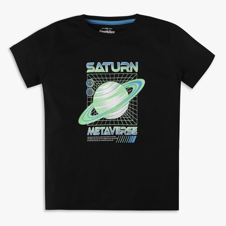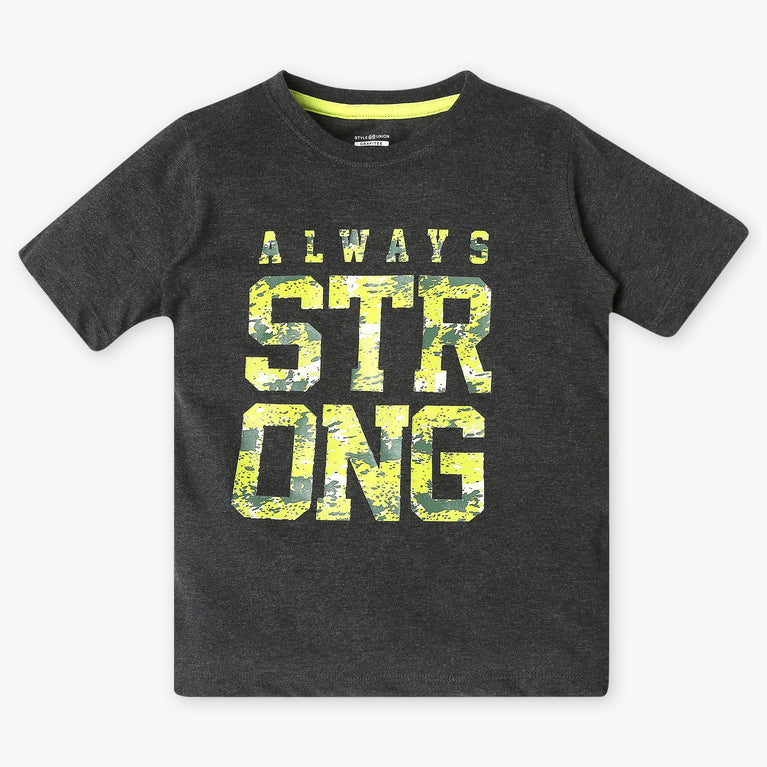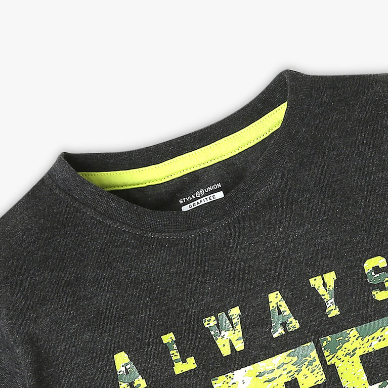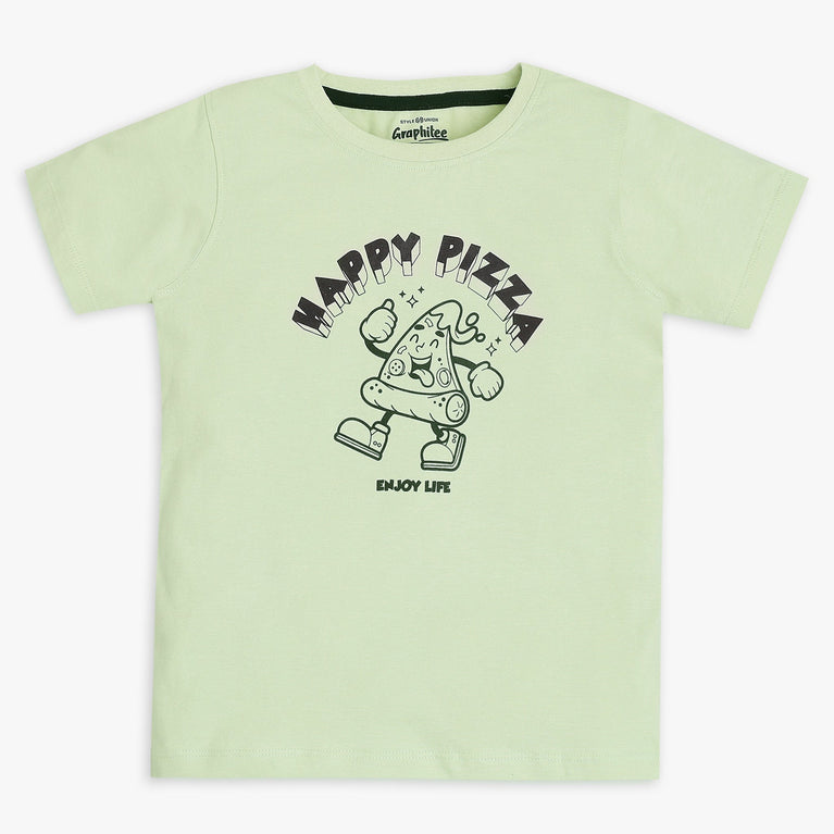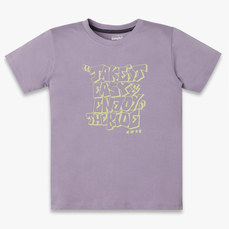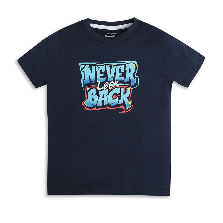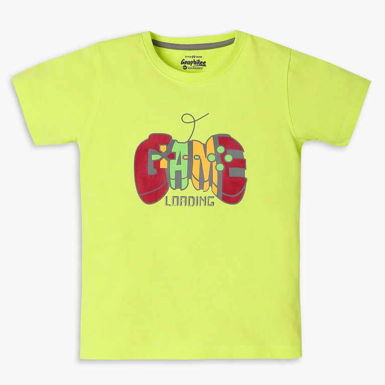 These graphic pattern t-shirt has crew neck and half sleeve. Made from Cotton, your kid's feel comfortable wearing the product.