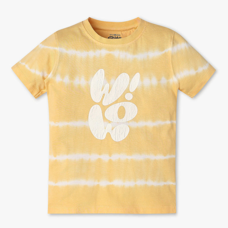 These tie - dye pattern t-shirt has crew neck and half sleeve. Made from cotton, your kid's feel comfortable wearing the product.