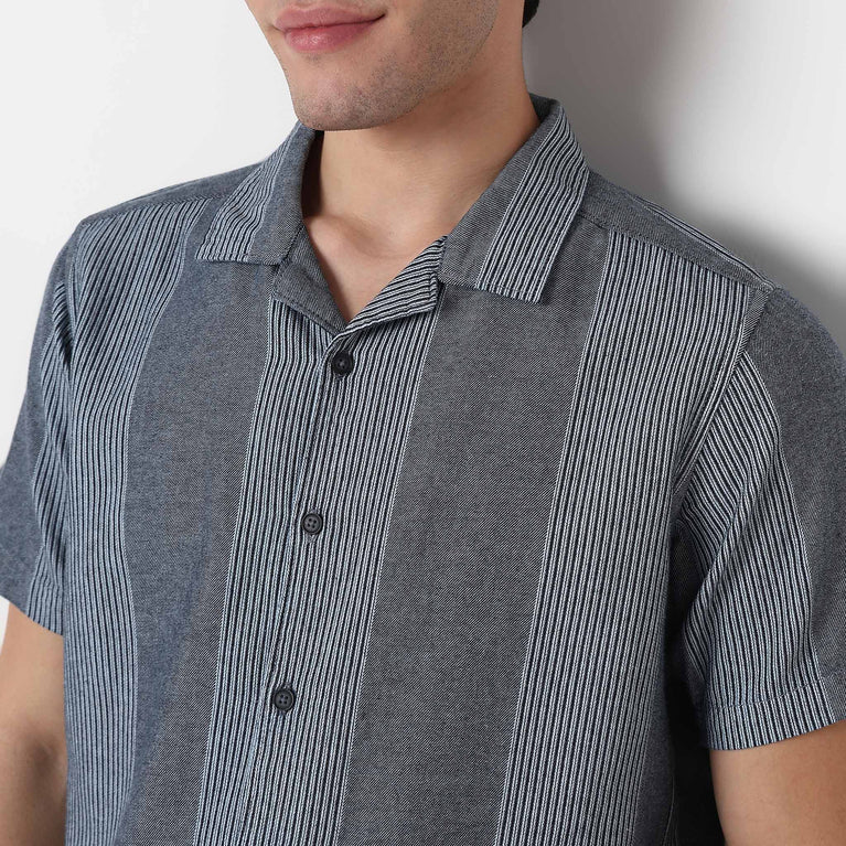 Camp Collar Half Sleeve Striped Structured Solid Bae Shirt
