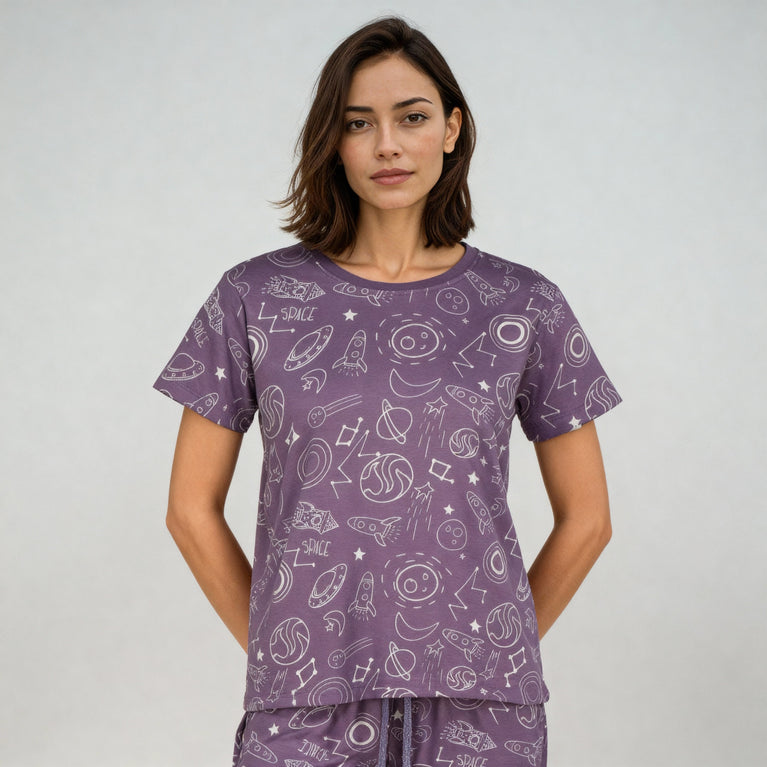 Discover effortless style with our Cotton Printed Lounge T-Shirt, designed specifically for women. Crafted from lightweight cotton, this t-shirt is perfect for casual outings or relaxing at home.
