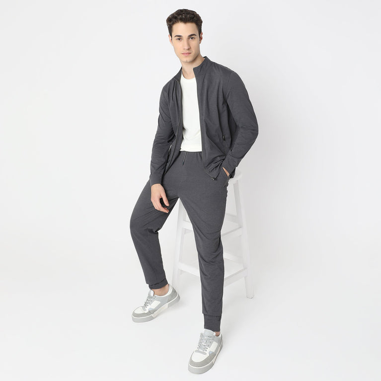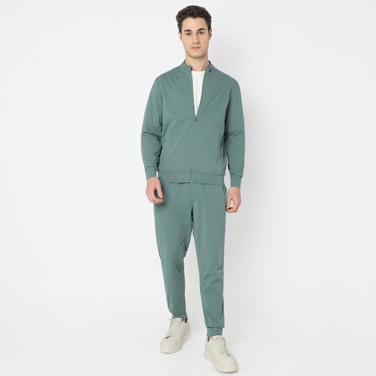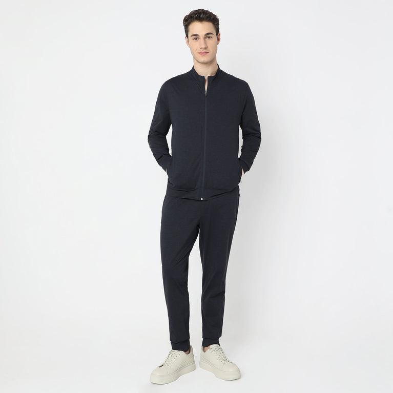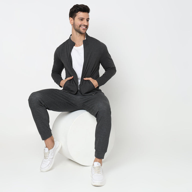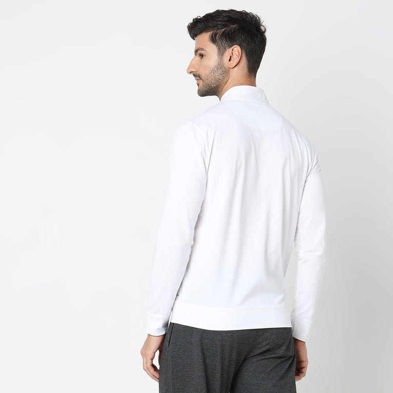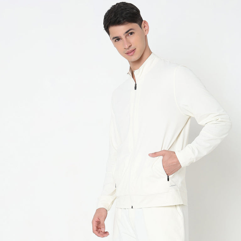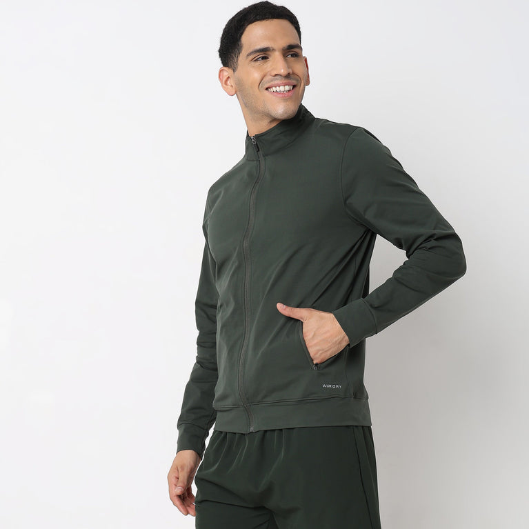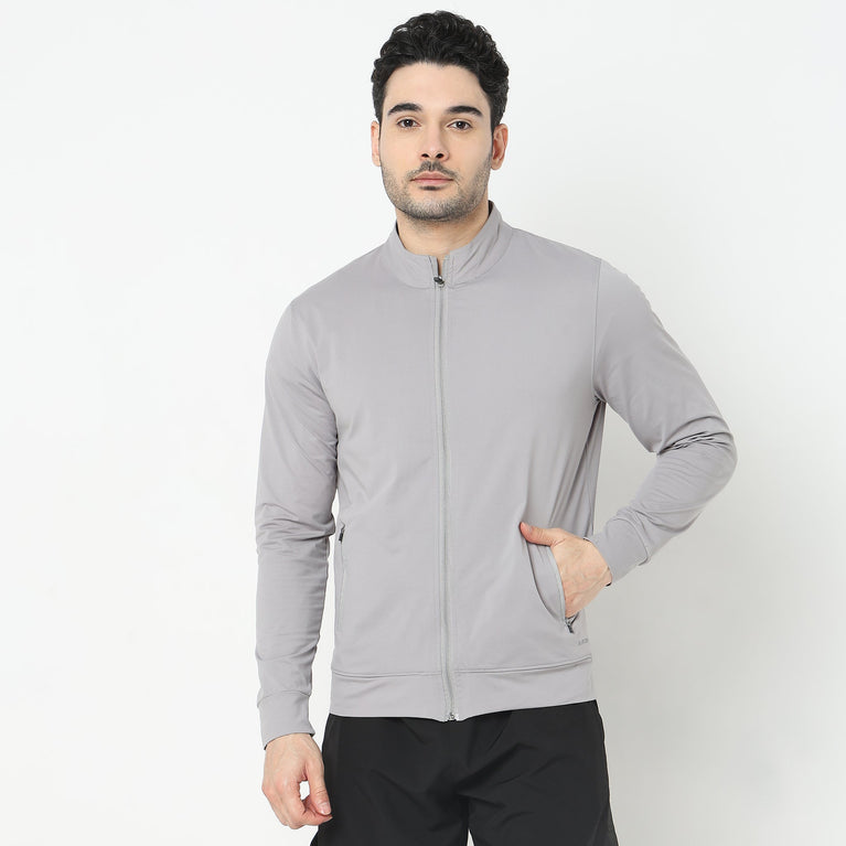 This modern activewear theme, solid pattern jacket has a high neck and full sleeve. Made from polyester, it is soft and comfortable to wear.