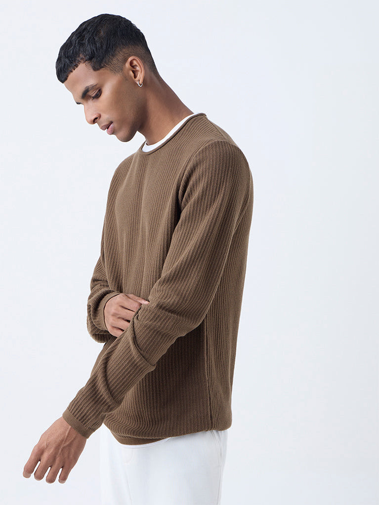 ETA Dark Brown Relaxed-Fit Cotton Sweater